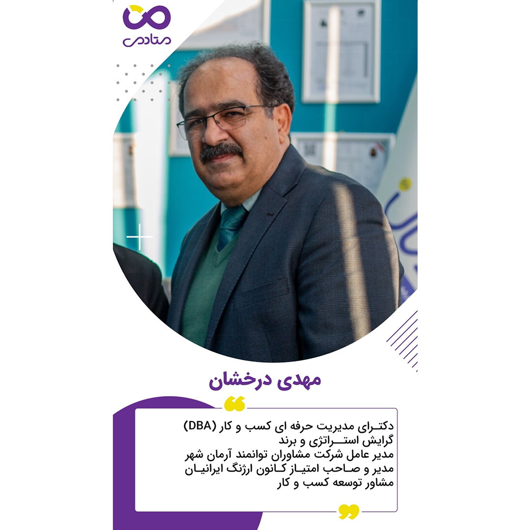 دکترای مدیریت حرفه ای کسب و کار (DBA) گرایش استراتژی و برند. مدیر عامل شرکت مشاوران توانمند آرمان شهر ،مدیر و صاحب امتیاز کانون ارژنگ ایرانیان ، مشاور توسعه کسب و کار.